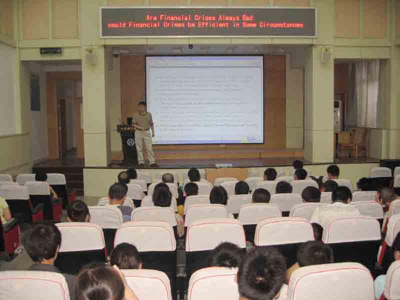 2009年6月16日下午,加拿大卡尔顿(Carleton)大学华裔终身教授张健康博士应邀来我中心作学术报告。张博士就金融危机有效性问题向365比分直播的部分师生作了精彩演讲。张教授概述了此次金融危机对实体经济的影响,认为此次危机的根源在于美联储实施了长期的低利率政策,是“政府失灵”造成的,而不是流行的所谓华尔街“市场失灵”的结果;从经济理论的角度看,是经济学家有关中央银行理论与模型的滞后性研究所致。张博士认为,如何进一步完善中央银行干预理论与干预政策,将是今后一段时期内经济学家首先要解决的一个重要课题。